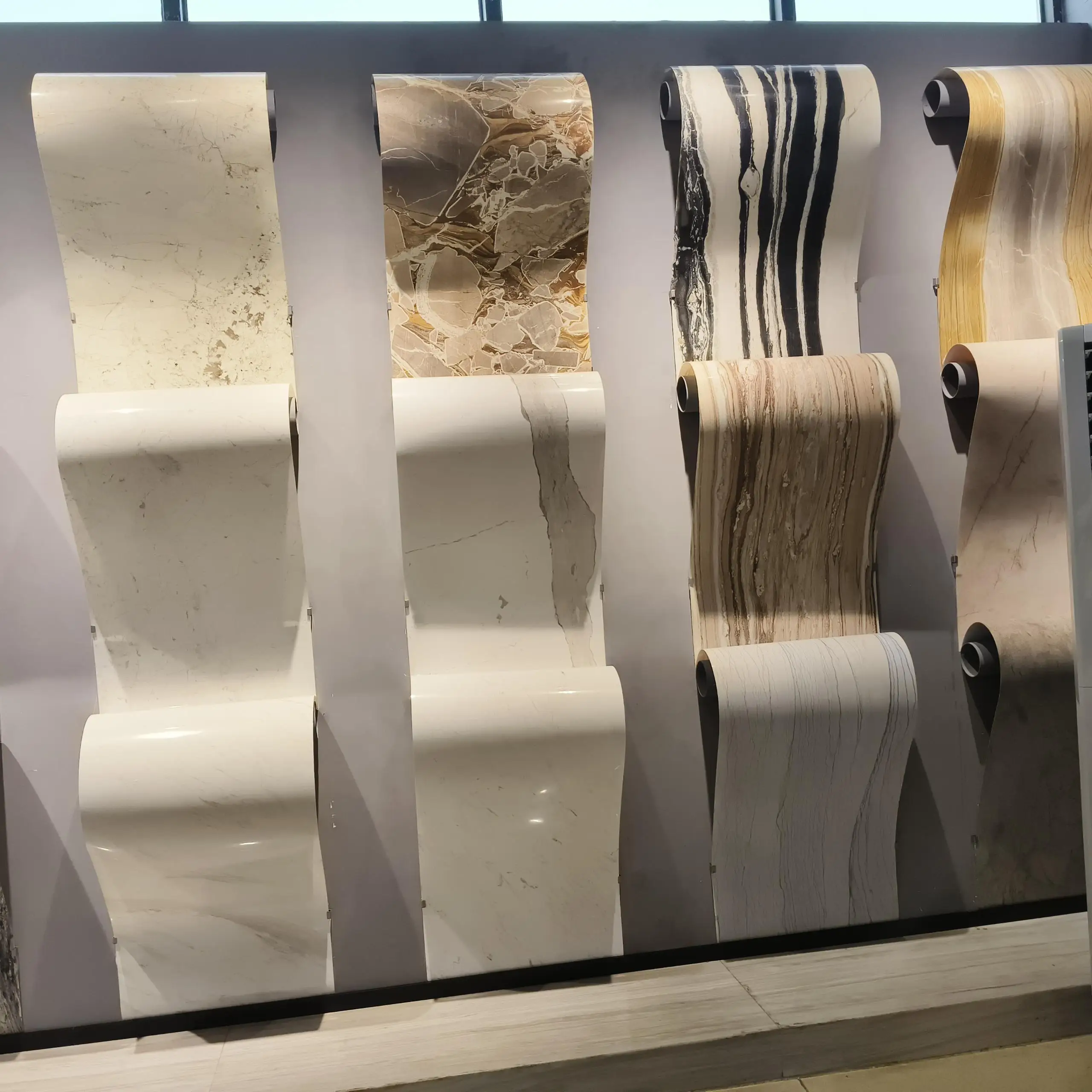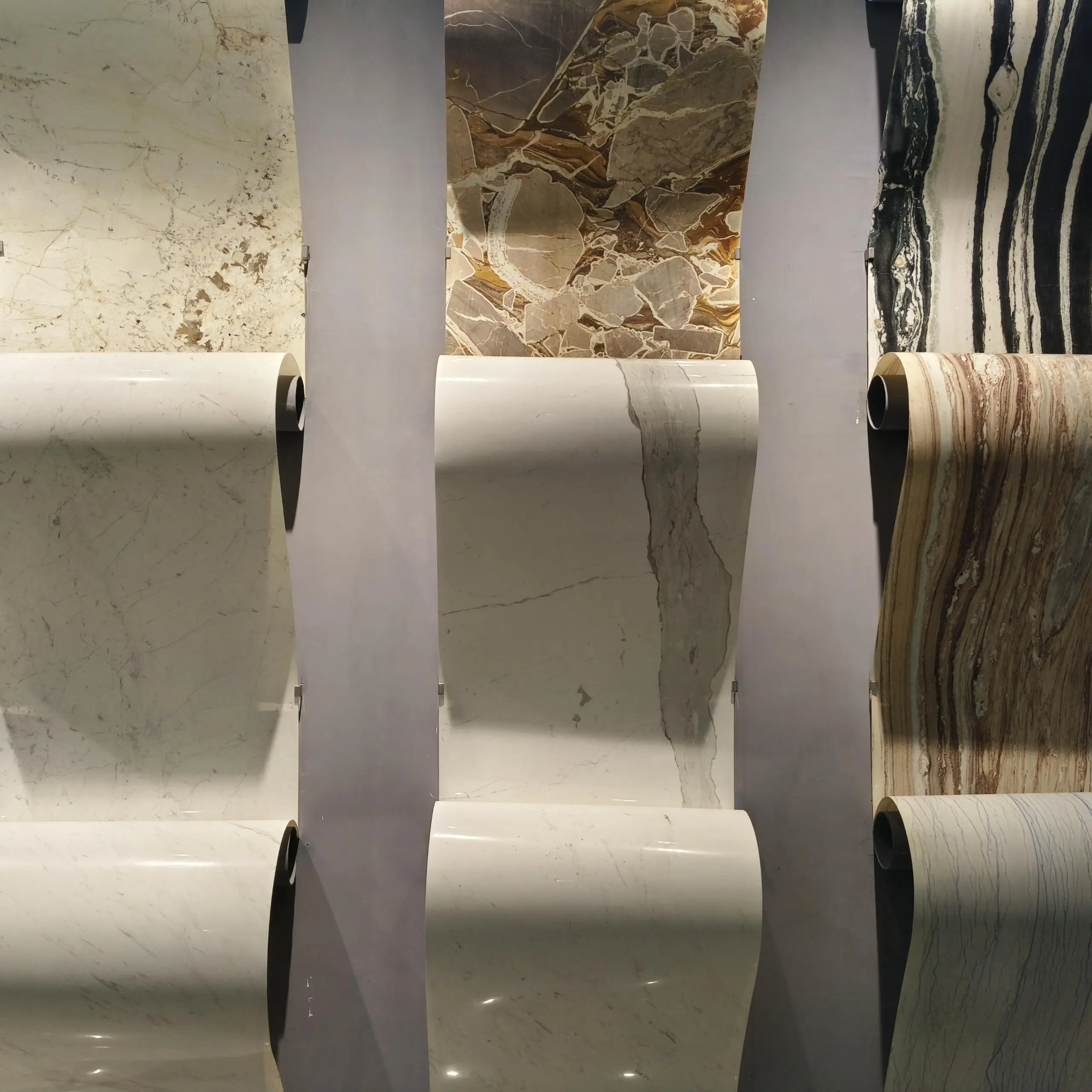 YUSHI İstəyə uyğun ölçülər super ultranazik elastik təbii marmar kaplaması plitələri villa otel divar döşəmə kabinet dekorasiyası üçün