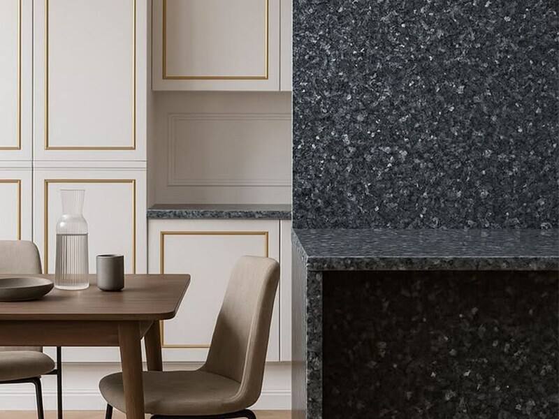 Blue Pearl Granite Slab is a premium natural granite distinguished by its deep blue-grey base and shimmering pearl-like crystal reflections. Quarried for its high density and exceptional durability, this granite features natural iridescent feldspar crystals that create a subtle sparkling effect under light, delivering a luxurious yet modern visual appeal. With excellent resistance to scratching, heat, and weathering, Blue Pearl Granite is especially suitable for countertops, flooring, wall cladding, staircases, elevator surrounds, and exterior applications, making it a reliable choice for both residential and large-scale commercial projects.