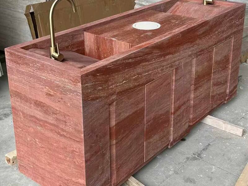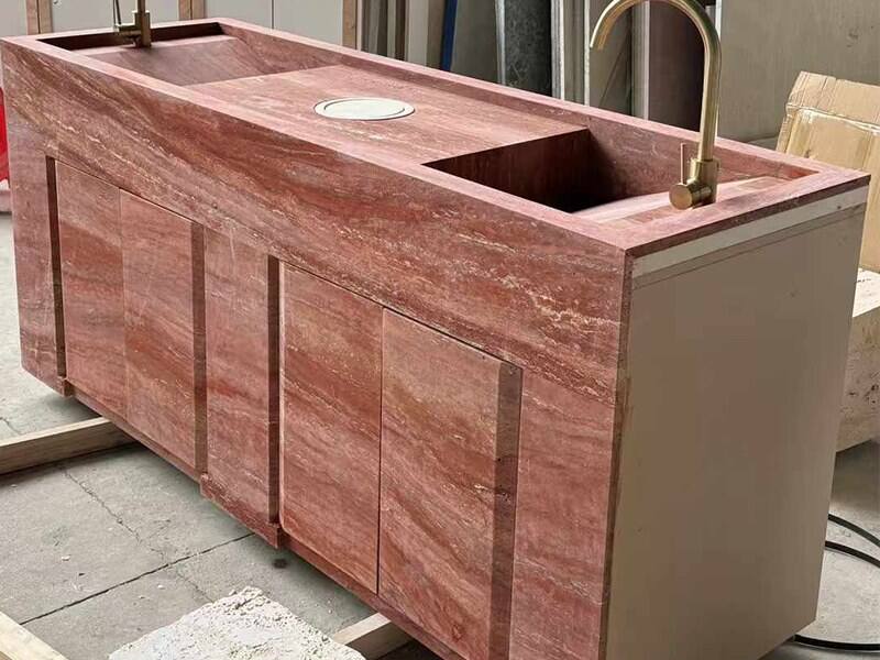 Προμηθευτής Προσαρμοστής Νησίδας Κουζίνας από Κόκκινη Τραβερτίνη της YUSHI STONE