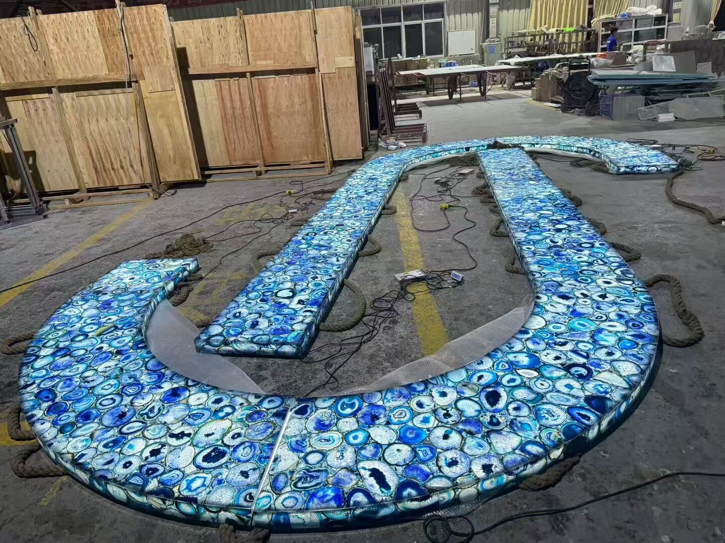 Nombre del producto: Barra de mostrador retroiluminada azul con piedra semipreciosa YS-EC043