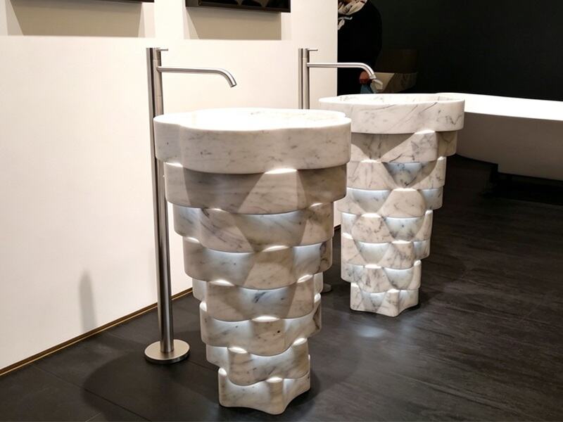 The Flower Carrara White Marble Pedestal Sink is an elegant marble pedestal sink and bathroom basin crafted from premium natural Carrara White Marble, featuring a soft white base with delicate grey veining. The design incorporates a refined flower-inspired silhouette, bringing a sculptural and artistic touch to modern bathroom interiors. Its integrated pedestal structure creates a clean and seamless appearance, making it a perfect focal point for bathroom vanity sinks, freestanding basins, and luxury bathroom design projects. This sink is widely used in boutique hotels, villas, apartments, and high-end residential spaces, combining natural beauty with functional design.