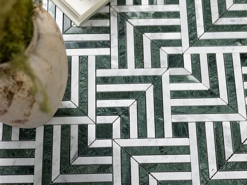 Green and White Marble Mosaic Tile