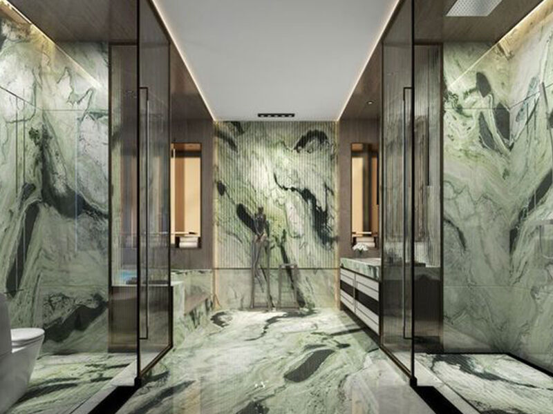 Green Verde Prato Marble Slab is a distinctive natural green marble known for its deep emerald to dark green background, highlighted by flowing white and light grey veining. This marble delivers a bold yet elegant visual impact, making it a popular choice for luxury interior wall cladding, feature walls, hotel lobbies, bathrooms, fireplace surrounds, staircases, and decorative architectural elements. With its rich color depth and natural movement, Verde Prato Marble is often specified in high-end residential villas and premium commercial projects where a strong design statement and natural stone authenticity are required. Its polished surface enhances color contrast and veining clarity, while honed or leathered finishes offer a more refined, contemporary aesthetic.