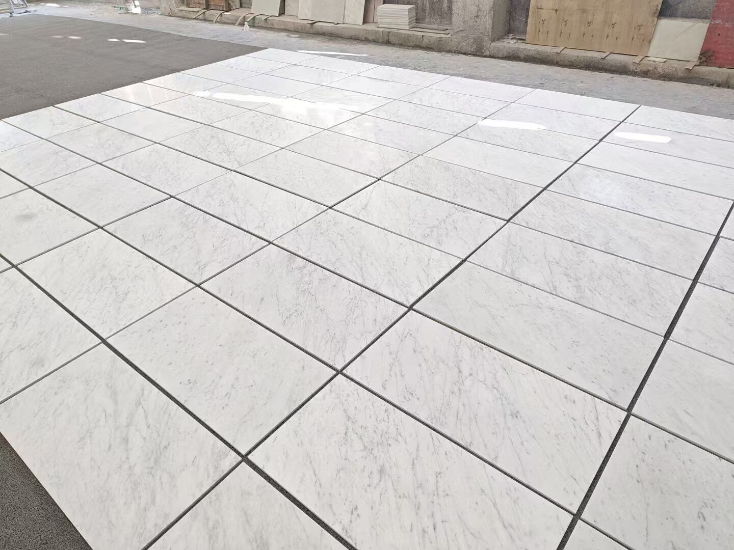 最先端のCNC切断機およびウォータージェット機械を使用することで、すべてのビアンコ・カルララ大理石タイルをミリ単位の精度で製造しています。