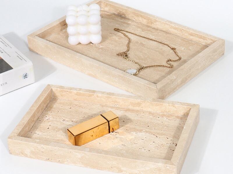 YUSHI STONE leverancier van beige travertijn vierkante dienbladen