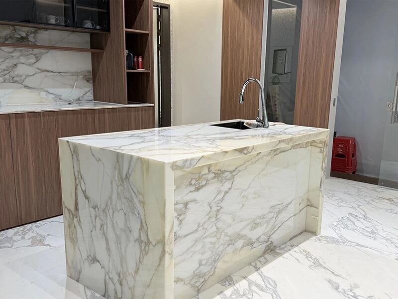 Als leverancier van Calacatta Gold aanrechtbladen biedt YUSHI STONE hoogwaardige natuurlijke Calacatta Gold marmeren aanrechtbladen met een lichtwitte ondergrond en elegante gouden aders, die wereldwijd worden gewaardeerd voor luxe toepassingen in keukens en badkamers. Dit materiaal is zeer gewild in high-end woningbouwprojecten, villa’s, hotels en commerciële interieurs, en biedt een verfijnde en tijdloze uitstraling. Dankzij strenge plaatselectie en kleurcontrole garandeert YUSHI STONE consistente kwaliteit voor keukenaanrechtbladen, werkeilanden en wastafelbladen.