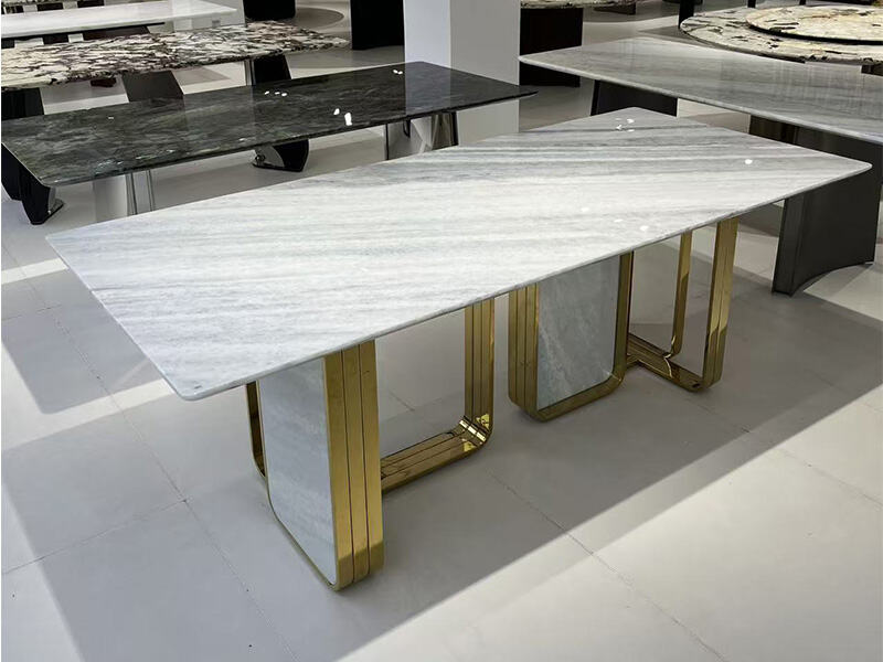 Structuur: Aangepaste marmeren tafelplaat met optionele hoekbeschermers van roestvrij staal of decoratieve metalen randaccenten