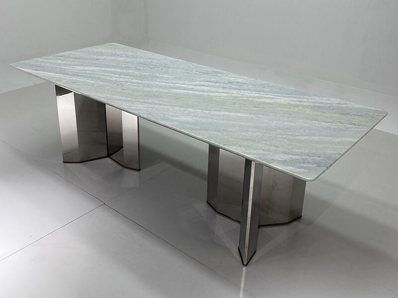 Het op maat gemaakte tafelblad van Crystal Blue-marmer is vervaardigd uit eersteklas natuurlijk Blue Crystal-marmer, dat wordt bewonderd om zijn opvallende doorschijnende blauwe tinten, kristallijne structuur en elegante, natuurlijke aders. De unieke lichtgevende uitstraling verleent elk interieur een verfijnde en artistieke karakter, waardoor het een uitzonderlijke keuze is voor luxe eettafels, salontafels, vergadertafels, receptiebalies en op maat gemaakte meubelprojecten. Om zowel de duurzaamheid als de moderne esthetiek te verbeteren, kan het tafelblad worden gecombineerd met op maat gemaakte roestvrijstalen hoekbeschermers of decoratieve metalen randaccenten, wat een verfijnd evenwicht creëert tussen de schoonheid van natuursteen en hedendaags design. Beschikbaar in een breed scala aan vormen – waaronder ronde, ovale, rechthoekige, vierkante en onregelmatige vormen – kan elk tafelblad volledig worden afgestemd op de specifieke ontwerpvereisten van het project.