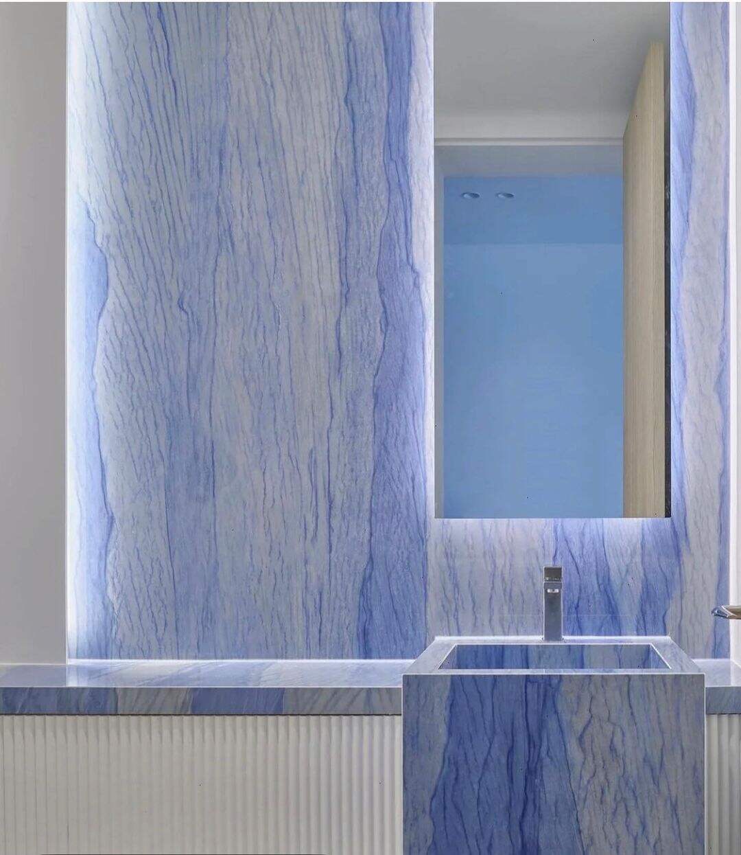 Blaty kuchenne i wyspy kuchenne: Jako blat kuchenny lub wyspa kuchenna dodaje odważny charakter luksusowym kuchniom. Intensywny odcień niebieski tworzy efektowny kontrast z jasnym drewnem mebli kuchennych lub białymi płytkami na ścianie, a jego trwałość pozwala bez problemu radzić sobie z gorącymi garnkami, krojeniem i wylewaniem – sprawiając, że stanowi zarówno funkcjonalną powierzchnię roboczą, jak i wizualny punkt centralny. Meble łazienkowe i panele ścienne: W nowoczesnych łazienkach podnosi meble łazienkowe do poziomu elegancji typowej dla spa, zamieniając codzienne rytuały w luksusowe doświadczenie. Jako panele ścienne (szczególnie w prysznicach) odporność na wilgoć i łatwa konserwacja czynią go praktycznym rozwiązaniem, podczas gdy estetyka przekształca wnętrze w spokojne schronienie. Ściany wykończone i lady recepcyjne: W hotelach, biurach czy prywatnych willach doskonale sprawdza się jako ściana wykończeniowa lub ladę recepcyjną. Ściana wykończeniowa Azul Macaubas w holu hotelowym przywita gości grandioznością, podczas gdy ladę pokrytą tym kamieniem przekazuje profesjonalizm i luksus, pozostawiając trwałe pierwsze wrażenie. Podłogi i schody: Jego trwałość czyni go odpowiednim do podłóg i schodów w miejscach o dużym natężeniu użytkowania – czy to w wejściach rezydencjonalnych, korytarzach handlowych, czy strefach jadalnych restauracji. Gładka powierzchnia kamienia oraz intensywny kolor nadają elegancję każdemu krokowi, podczas gdy jego wytrzymałość gwarantuje odporność na lata użytkowania. Meble na zamówienie i projekty z podświetleniem: Idealny do artystycznych instalacji i indywidualnie projektowanych wnętrz: stolarka na zamówienie (stoły jadalniane, stoliki do salonu) staje się tematem rozmów, podczas gdy projekty z podświetleniem (np. akcentujące ściany lub dekoracyjne panele) wzmacniają subtelne prześwitowanie kamienia, rzutując miękkie niebieskie światło, które dodaje ciepła i przytulności każdemu pomieszczeniu.