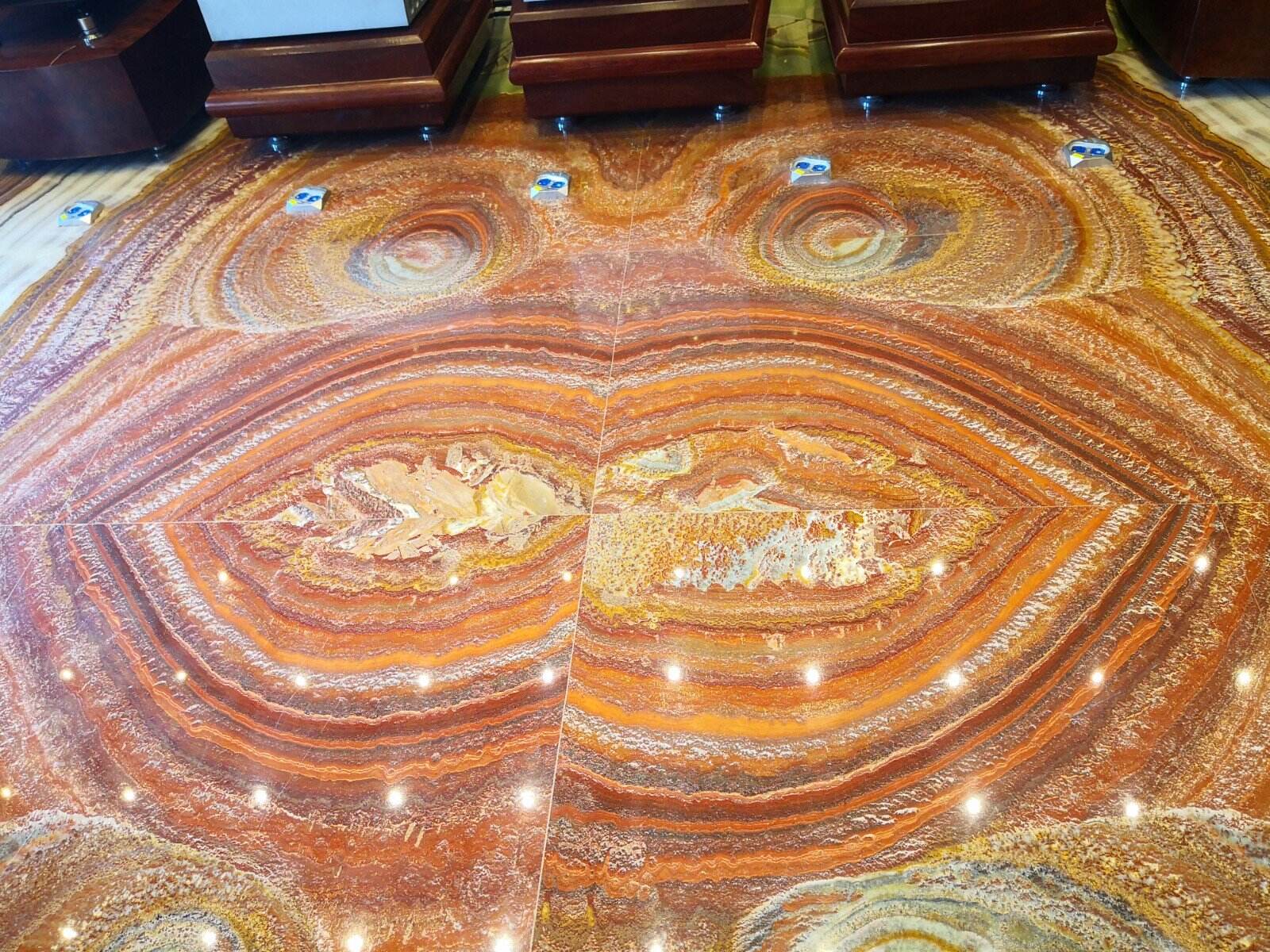 Marmur Ruby Onyx jest znany ze swojej przezroczystości i naturalnego połysku. W połączeniu z podświetleniem LED tworzy luksusowy i efektowny wygląd, idealny dla hoteli pięciogwiazdkowych, willi oraz wnętrz komercyjnych.
